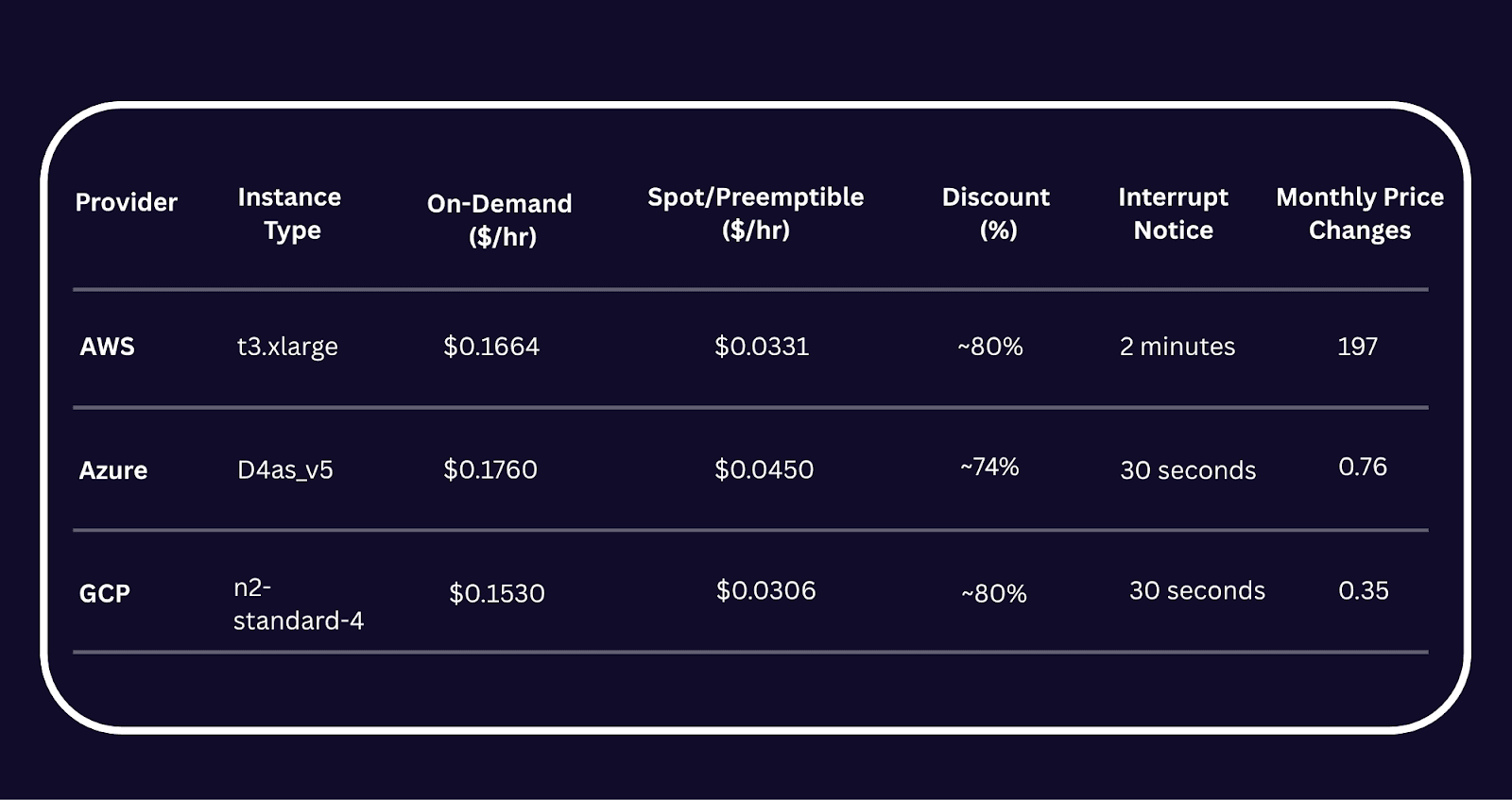 AWS, Azure, GCP Price Comparison: Spot Instances and Preemptible VMs#