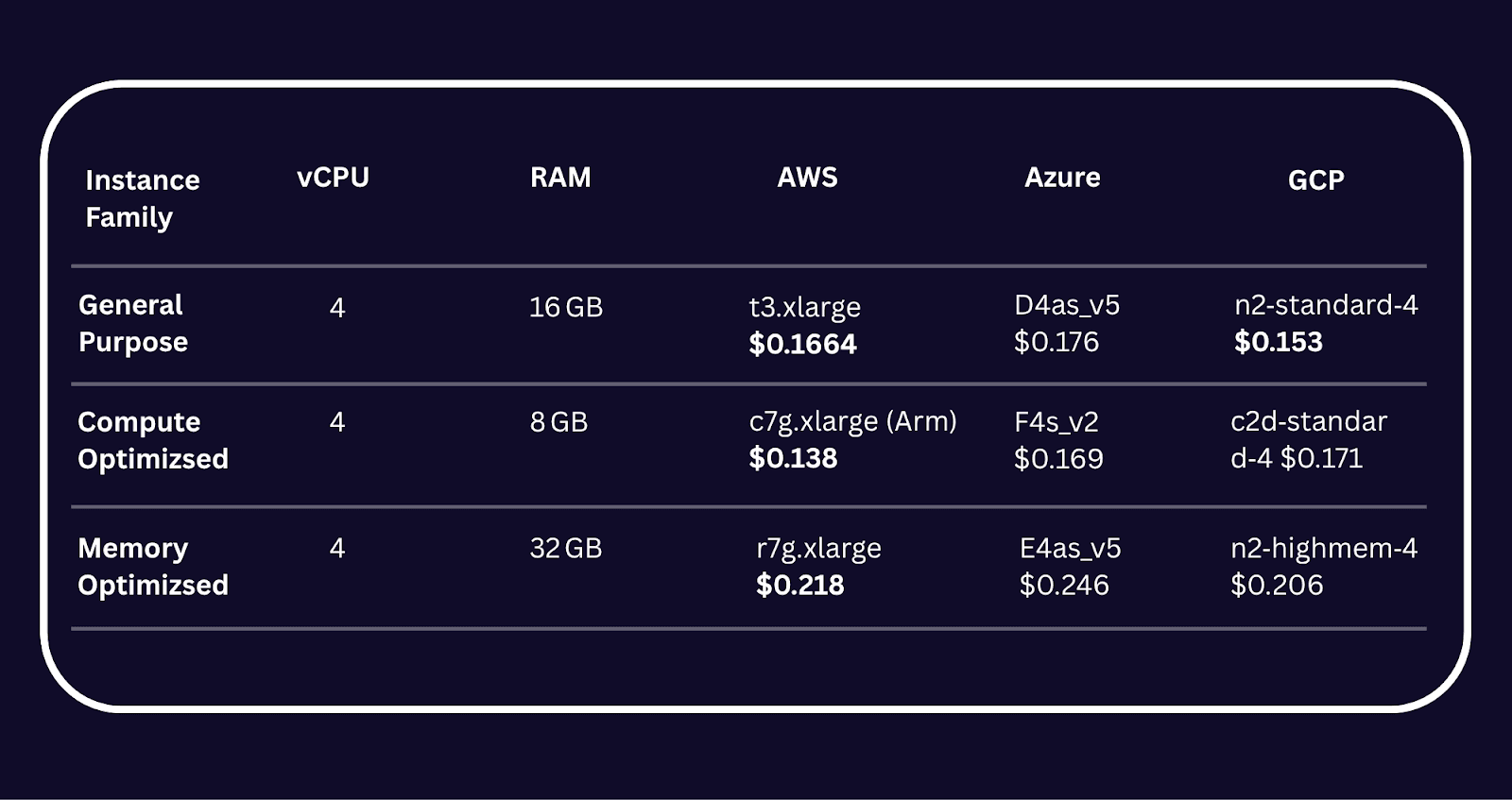 Compute-Optimized Instance Pricing (4 vCPU, 8 GB RAM)#