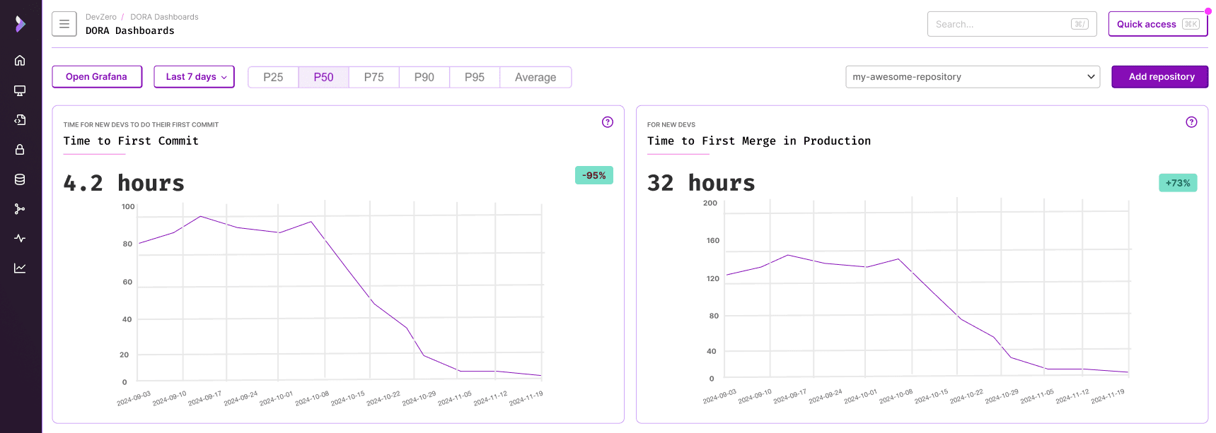 These metrics provide a clear picture of how quickly new hires are integrated into the development workflow.